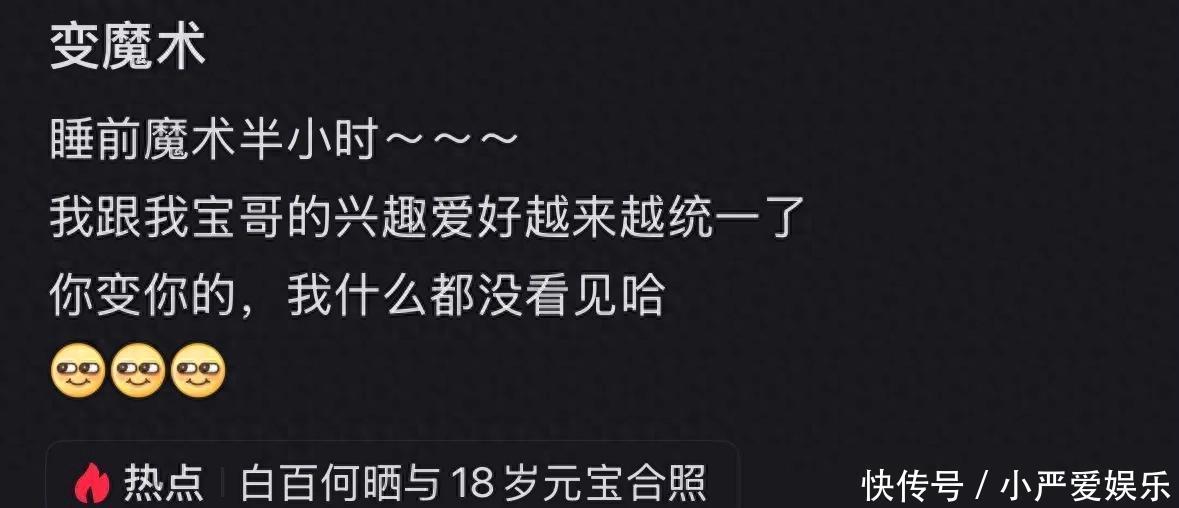 近期,白百何更新动态,难得晒出儿子陈盛桐正面清晰照,她在配文里笑称睡前有半小时魔术时光,还俏皮表示你变你的,我什么都没看见,字里行间洋溢着与孩子如友相伴的惬意。